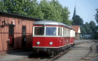 1985: Einrichtung eines Zubringerverkehrs in Zusammenarbeit mit den Verkehrsbetrieben der Grafschaft Hoya (VGH), Errichtung einer Fahrzeughalle für normalspurige Fahrzeuge.