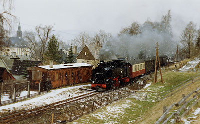 Die Fahrt mit der Fichtelbergbahn nach Oberwiesenthal am Fuße des Fichtelbergs gehört zu den reizvollsten Bahnfahrten mit einer Schmalspurbahn in Deutschland.