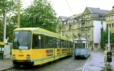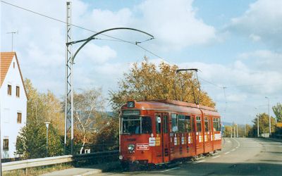 Vor der Beschaffung der Tw 251-258 wurde der EVAG Tw 1118 in Heidelberg erprobt.