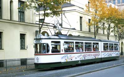 | Baureihe: M8C Betriebsnummern: 8001-8012 Hersteller: MAN, DUEWAG Bauart: 8x Gel3 ZR Baujahr: 1985 |