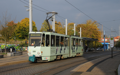 | Betriebsnummern: 201-204 Hersteller: ČKD Tatra/MGB Typ: KT4DM Bauart: 4x Gel2 ER Baujahr: 1987 (1992: mod. MGB) |