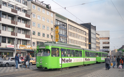 | Betriebsnummern: 401-460 Hersteller: Düwag/LHB Bauart: 4x Gr ER Baujahr: 1956-1958 (1974: Umbau mit Klapptrittstufen in 421 II - 430 II) |