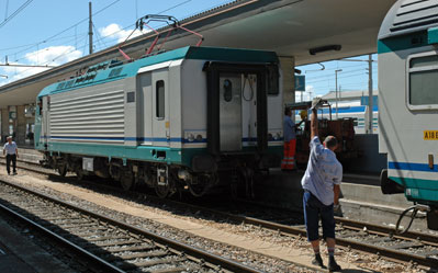 Rückwärtige Seite einer Lokomotive der Baureihe E.464 mit Gepäckabteil.