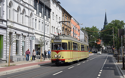 Vier Oldtimerzüge starteten um 10:10 Uhr am Düsseldorfer Hauptbahnhof, um mit dem "Sechsfensterwagen" 954 (Baujahr 1928) einen Korso zu bilden, der zur Eröffnung einen Rückblick auf die traditionsreiche Geschichte der Straßenbahnstrecke zwischen Düsseldorf und Ratingen zu geben, die am 20. November 1897 eröffnet wurde und ganz in der Nähe in der Düsseldorfer Straße ihre Endstelle besaß:
