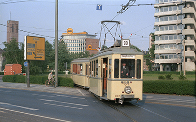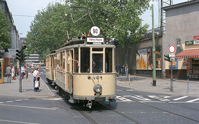 Rheinbahn Oldies, die als Linie 90 Zubringerlinie vom Hauptbahnhof zum Hafen leisteten.