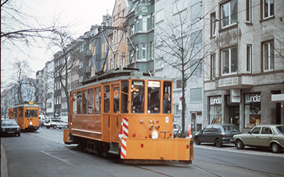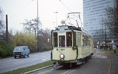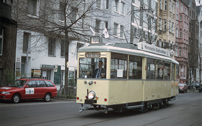 Am Ostermontag, dem 8. April 1996, feiere die Rheinbahn mit einem großen Straßenbahnkorso durch die Innenstadt, 23 Züge mit insgesamt 38 Straßenbahnwagen – vom historischen Oldtimer bis zur modernen Niederflur-Straßenbahn, die an diesem Tag ihren Premiere-Einsatz in der Öffentlichkeit hatte.